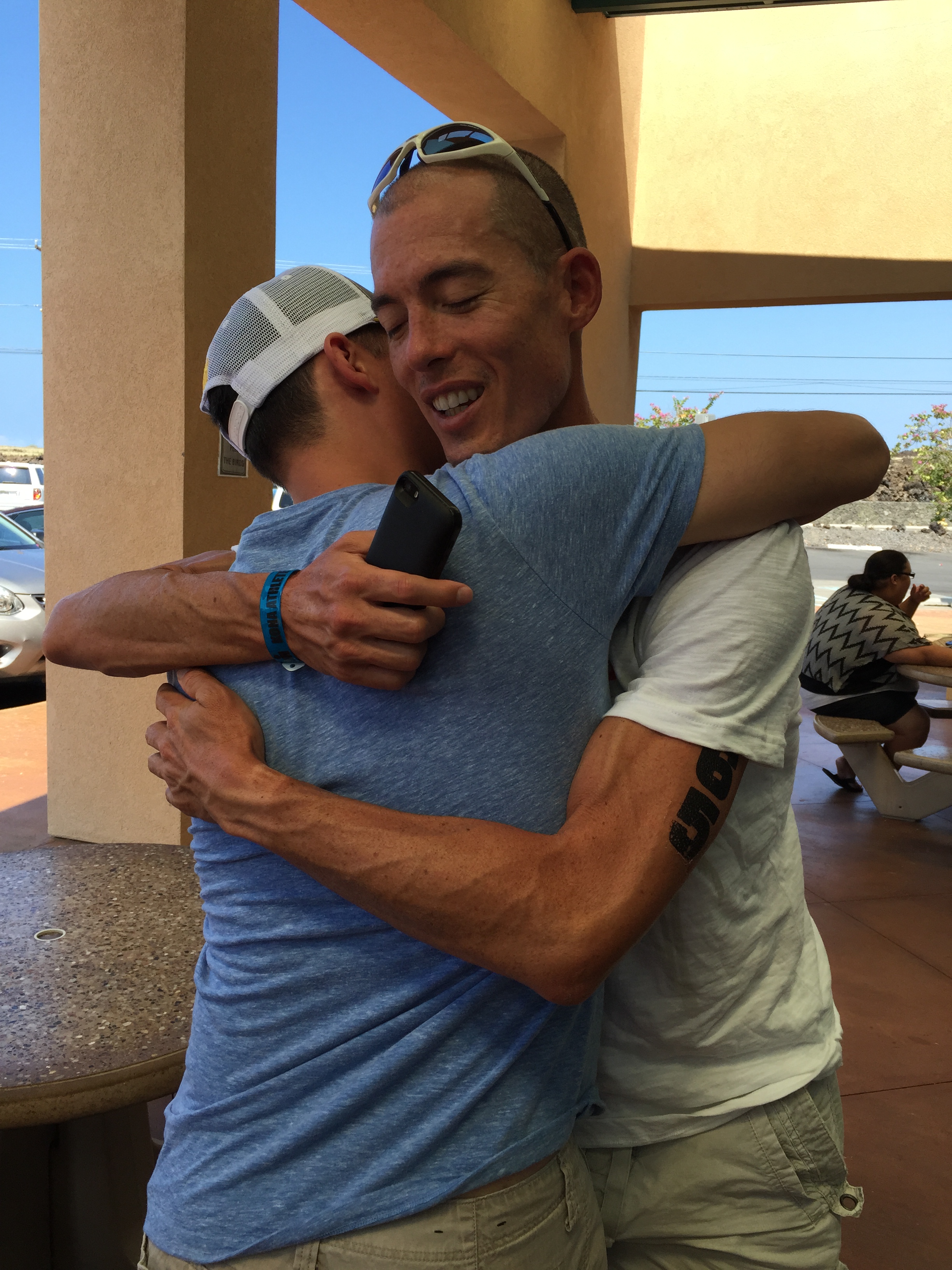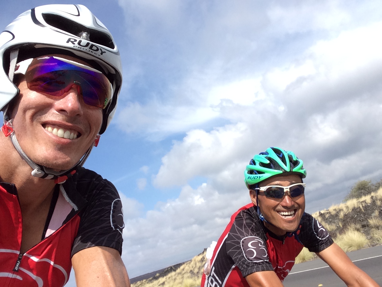 A couple miles later on the Queen K, where desolation abounds, I caught up to my teammate Kyle. (He won the ITU Long Course World Championship in AG 50-54 a few weeks ago in China).