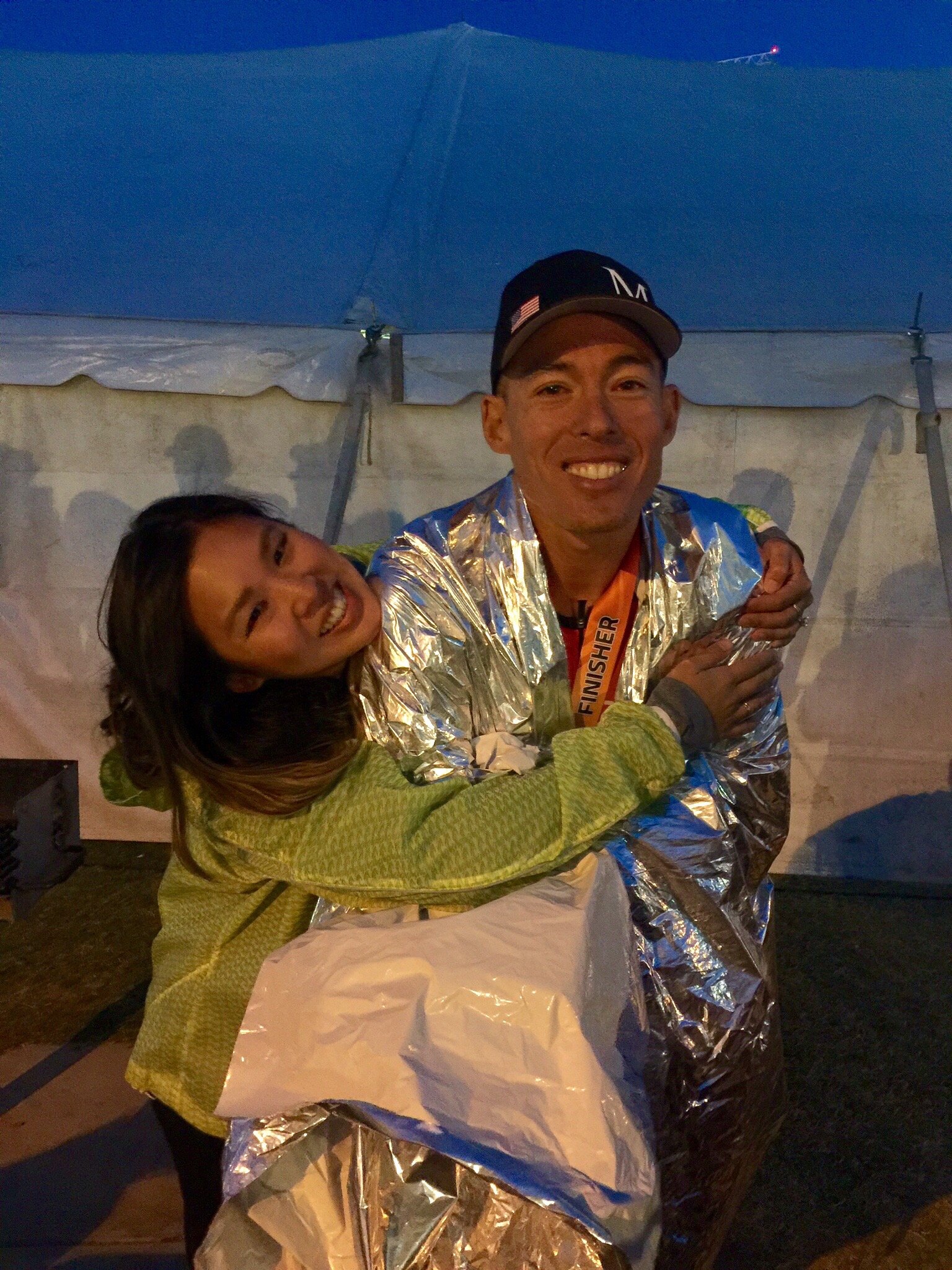 But Michelle had been spectating all day, and I didn’t want her to wait one second longer. So I declined the IV (which really would’ve expedited recovery), and I went straight to my wonderful wife.