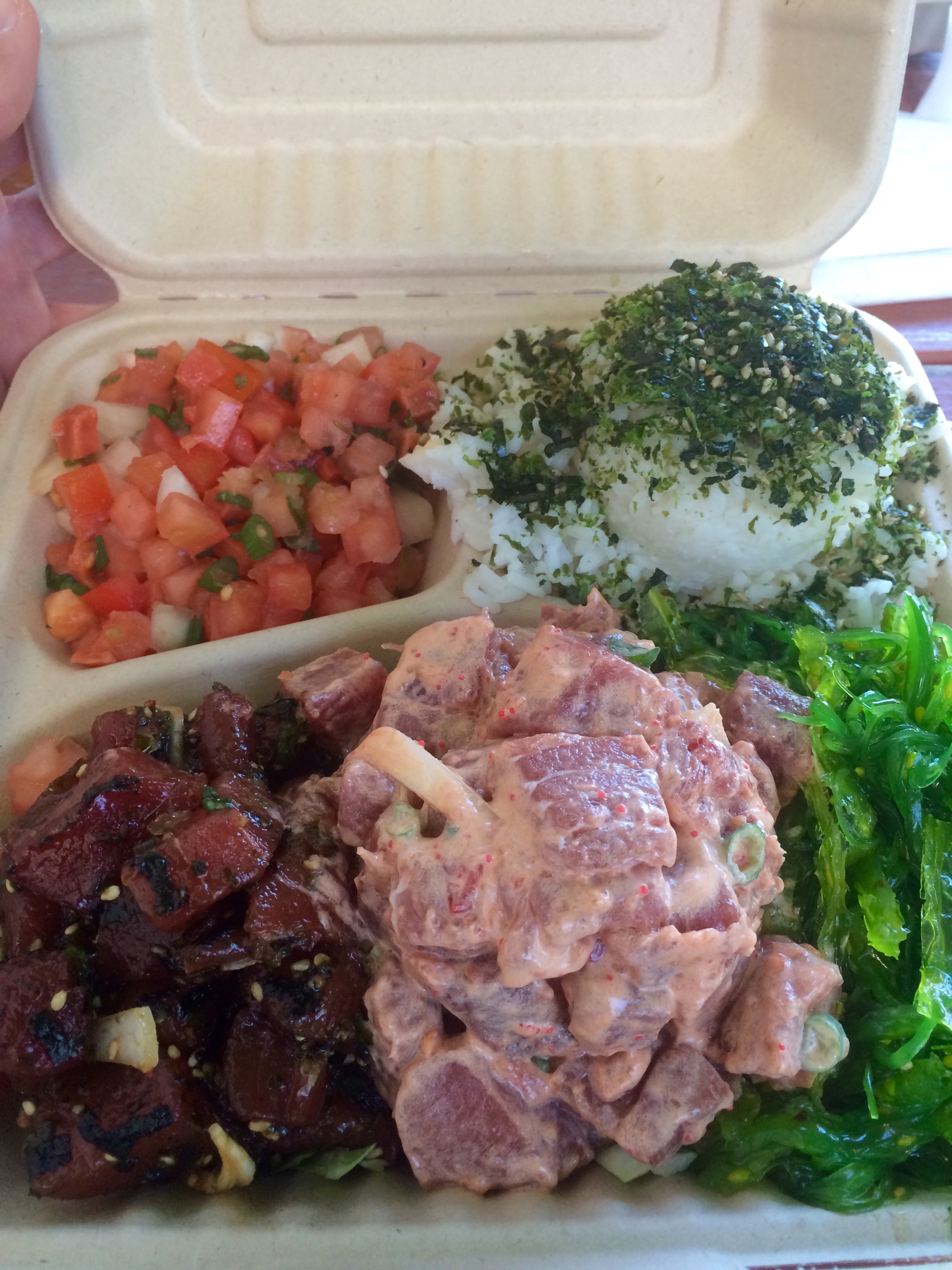 We finally made it back to Kailua-Kona. And then after a change of clothes, the reward for our effort: poké at Umeke’s.