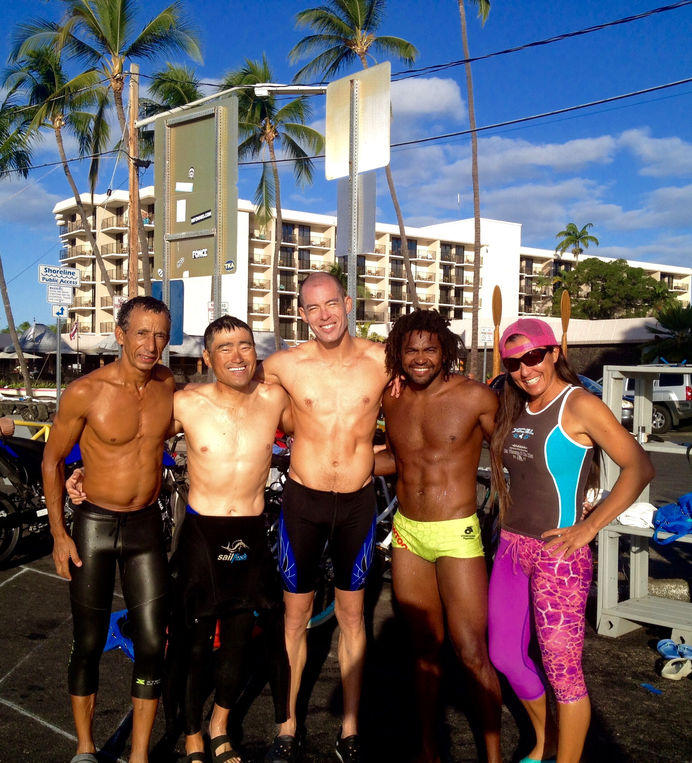 It was me, Keish, Sal, and Samuel. I felt great! Even though I was sore, and even though I had mental whiplash from yesterday, I swam faster (in a swimskin) than I did the day before (in a wetsuit).