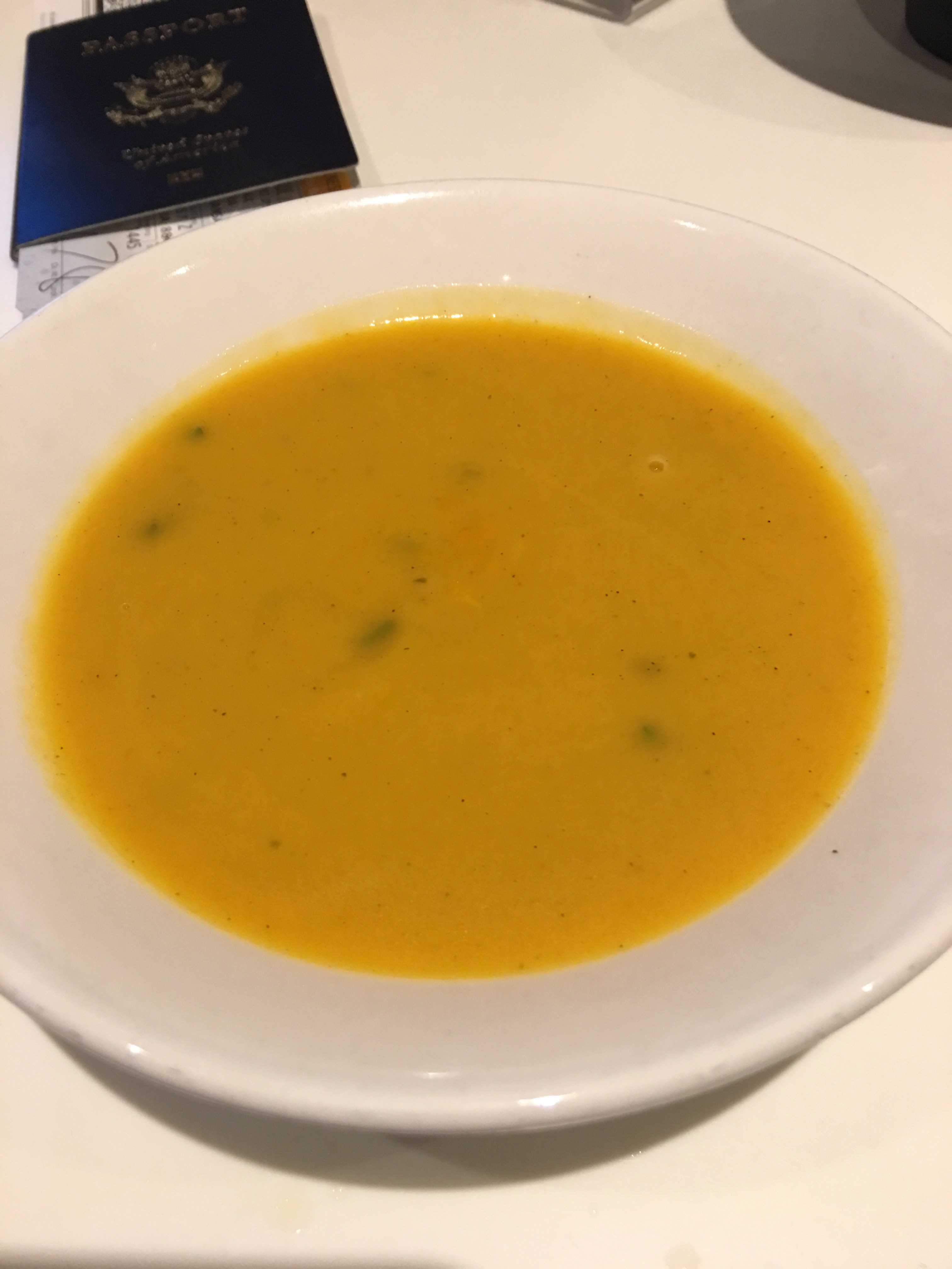 I parked at The Parking Spot Century (they have a 25% off coupon on their website). The shuttle whisked me to the Tom Bradley Terminal, where I quickly made my way up to the Star Alliance Lounge for some butternut squash soup,