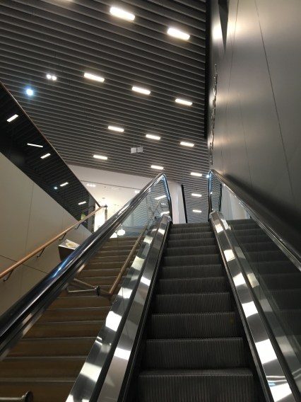 Boarding was divided by those sitting on the lower deck and those sitting on the upper deck. I was among those sitting on the upper deck of the plane. During the boarding process, we took an escalator up to the jetway, which aligned itself with the upper deck of the plane. That was cool.