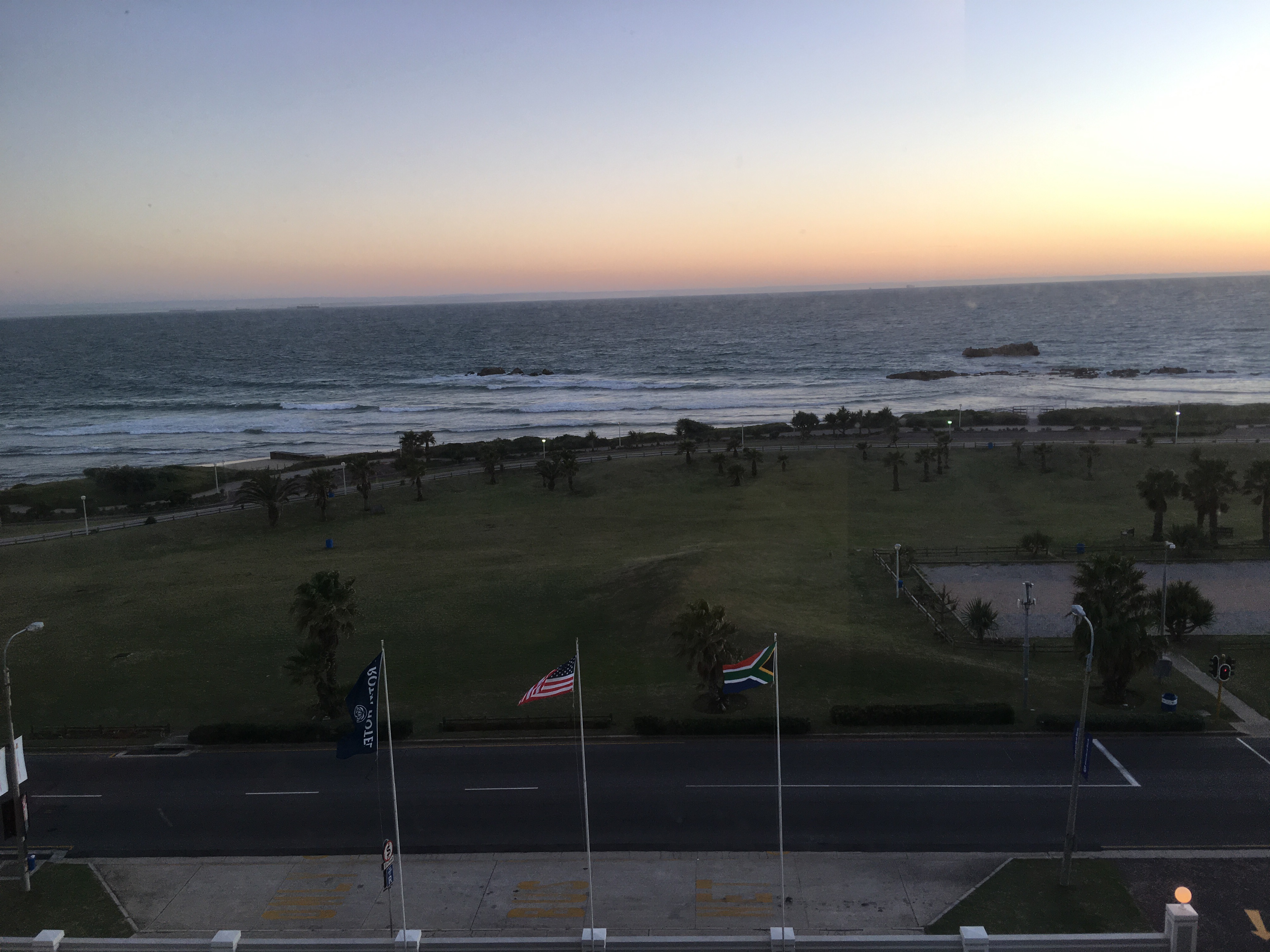 I cannot pretend to have seen Cape Town, Johannesburg, any of the nature reserves, or very much of South Africa. But I did spend six days on the ground in Port Elizabeth. Each day (just before sunset) there were kite surfers jumping waves in Nelson Mandela Bay (which was the view from our hotel room). There were people jogging and cycling along Marine Drive (in the heart of PE). The sun was high, the wind was great, and the culinary delights — locally-sourced springbok, kudu, warthog, crocodile, and wild boar — were yummy.