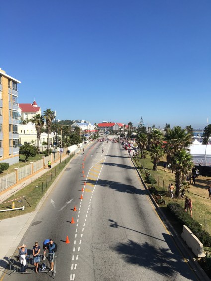 Because it’s called a “bay,” I expected the water to be more tranquil and calm. This expectation should be modified by anybody considering this 2.4 mile swim. Nelson Mandela Bay was as violent (if not more) than any ocean swim I’ve completed. One must make an effort not to swallow water with every stroke, for the undulating nature of the “bay” — coupled with the undercurrent and the swelly conditions — creates a cacophony that, at least for me, served a proper wake-up call.