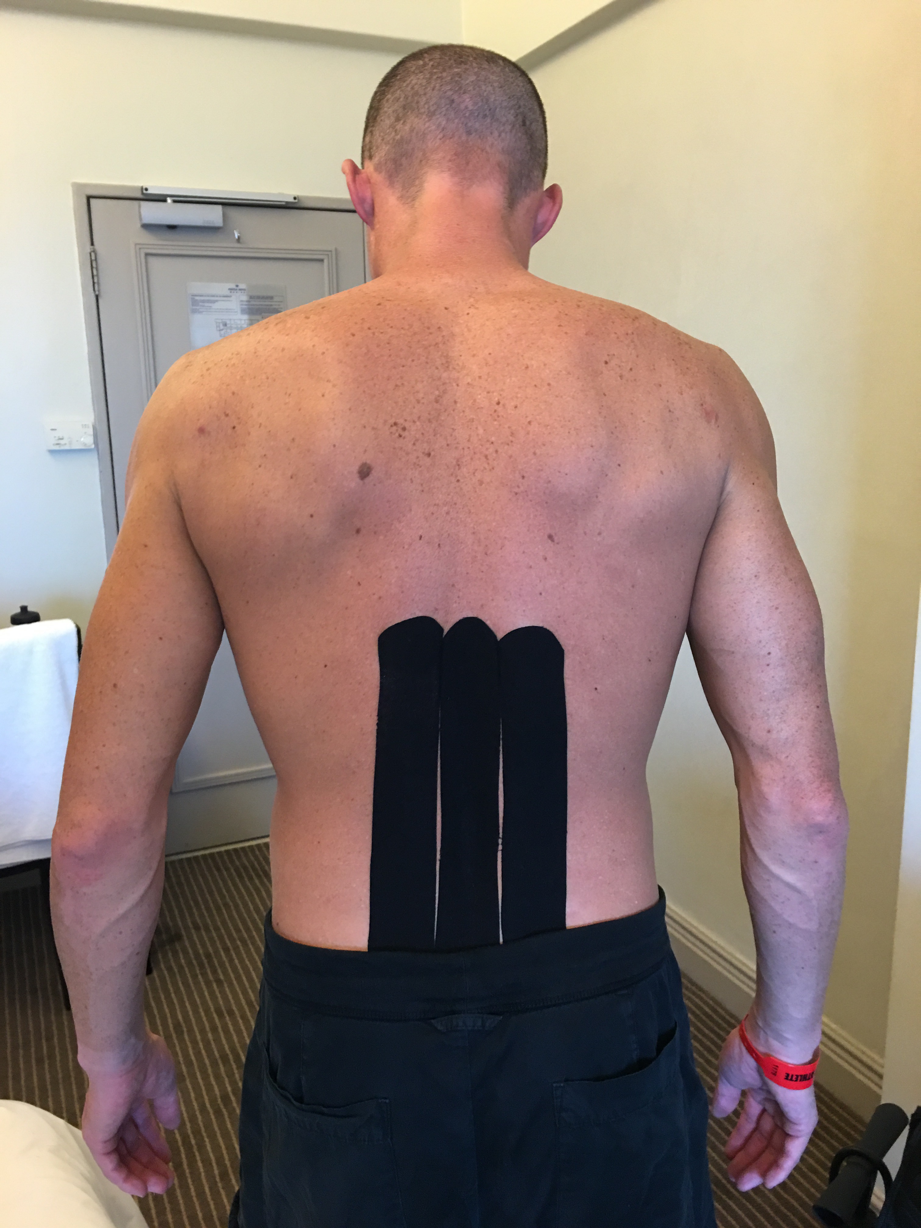 12 hours remained until race start. I’d already carbo-loaded and made every attempt to top off my electrolytes. What I required was extra support for my lower back, as I didn’t know if the injury I’d sustained would get ugly. I reached for a roll of MuscleAidTape, my trusted source for muscle support.
