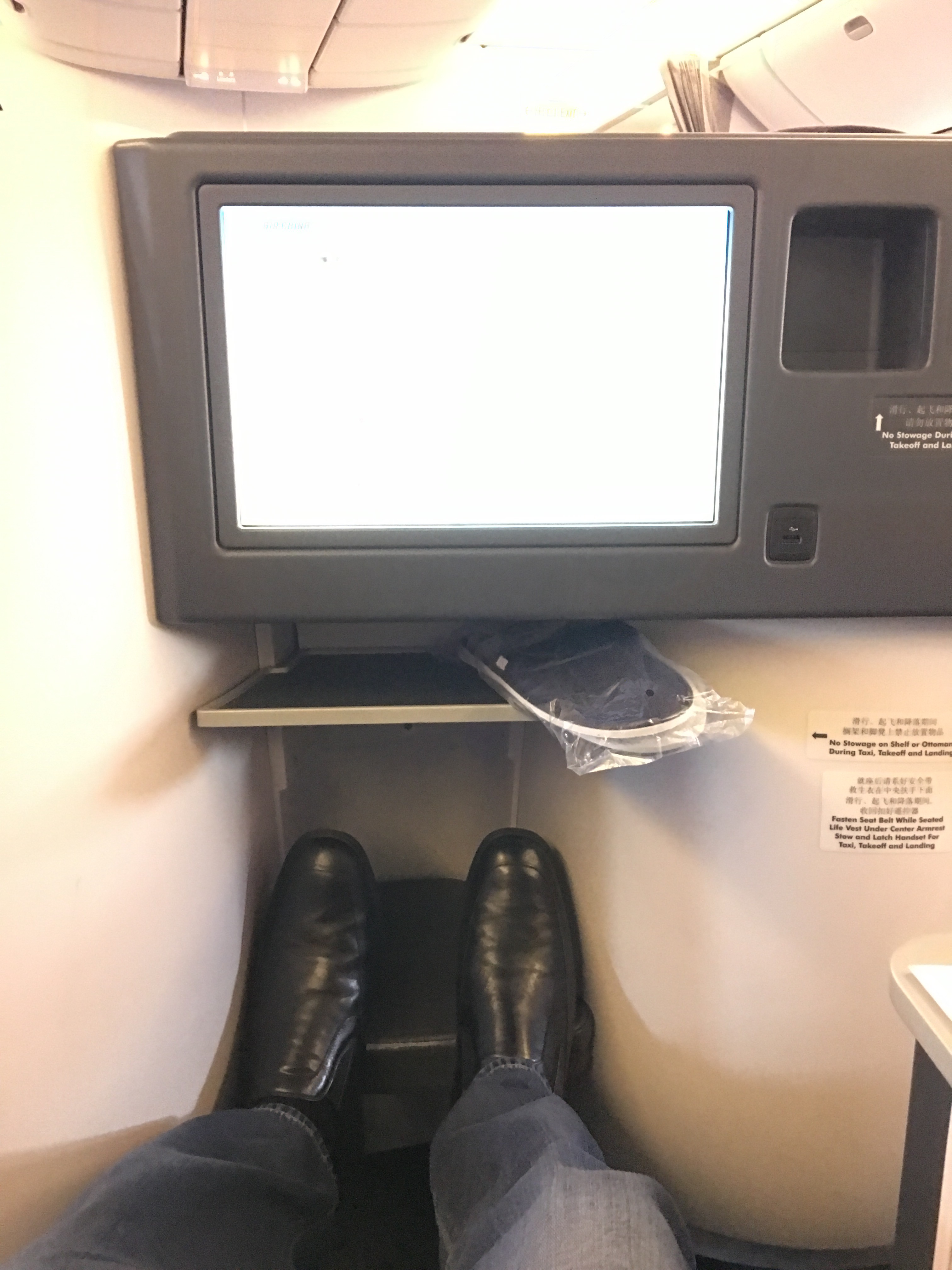 Michelle showered in the lounge. I changed my socks. We both ate some pork shumai. And then we had one more flight: 6.5 hours to Singapore.