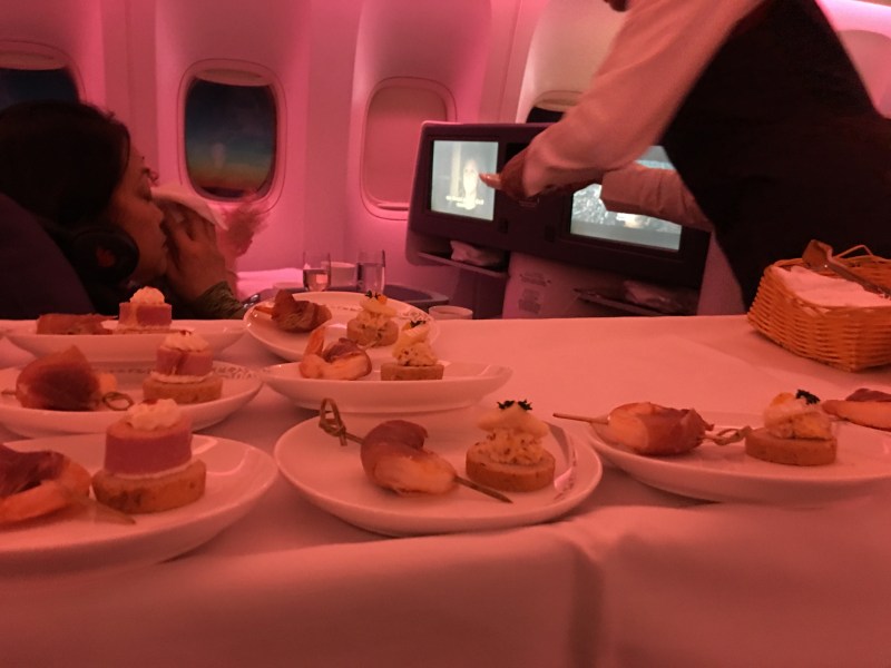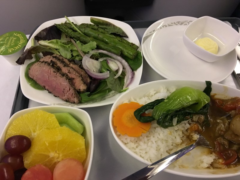 Air China’s 777-300 Business Class configuration is 2x2x2. In order to ensure unobstructed aisle access, select the middle seats. (Or go to SeatGuru to make sure you don’t find yourself in a sub-optimal spot for the next fourteen hours).