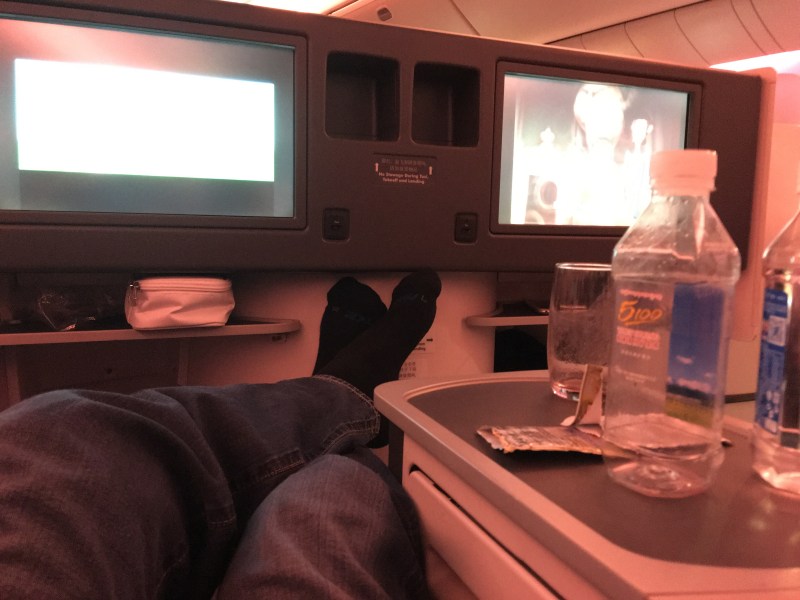 Air China: Lackluster American movie offerings. Smoking pilots. (I’d read about this previously on FlyerTalk. Unfortunately, our experience on Air China led us to believe that the pilots were smoking in the cockpit or on the flight deck, as the smoke wafted back toward our seats). Great lie-flat seats. Great food. Poor snack offerings in the galley. Decent lounge in Peking with very small shower rooms. The next time we fly to Asia, we will likely opt out of Air China and, instead, stick with Air Canada, Singapore Airlines, United Airlines, Asiana, ANA, or EVA.