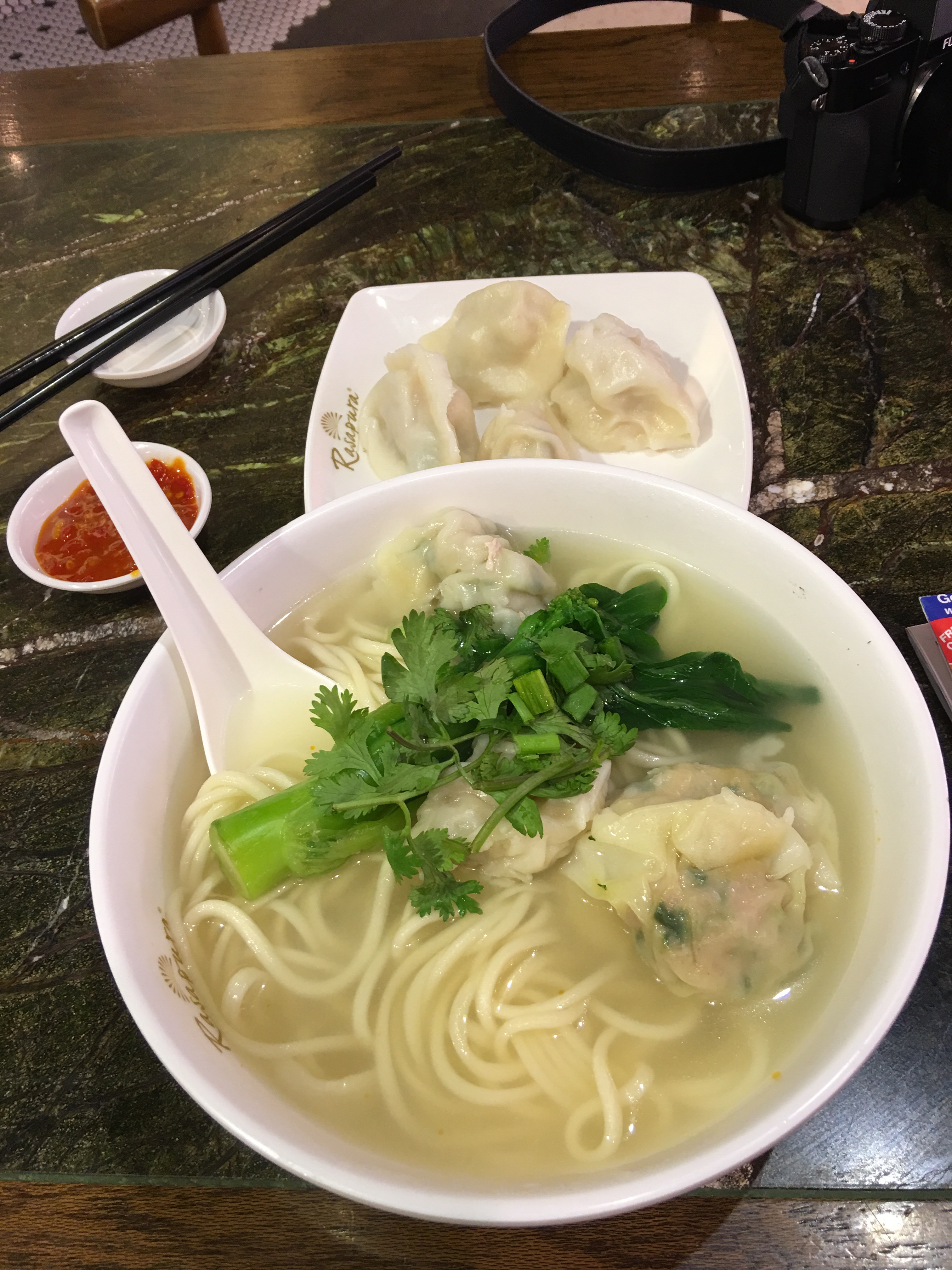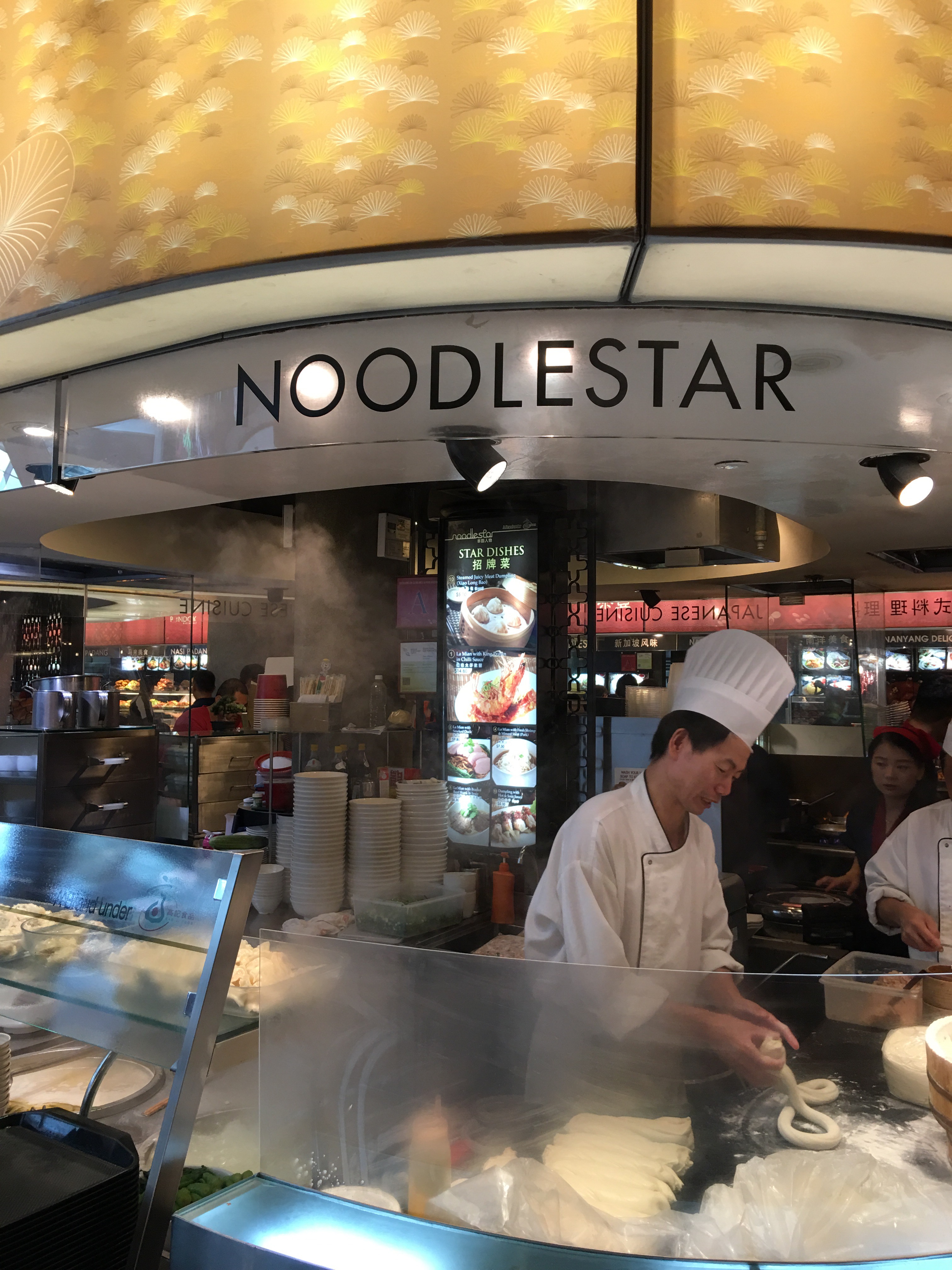 We worked up an appetite after looking at so many plants and trees and flowers, so off to the food court we went! Food courts are fairly common in Singapore, having become the more modern, air-conditioned form of the hawker center. Often located in shopping malls on the lowest floor, we found a flurry of food options at the Marina Bay Sands mall. Noodlestar became our favorite, as the noodles and dumplings were handmade for immediate consumption.