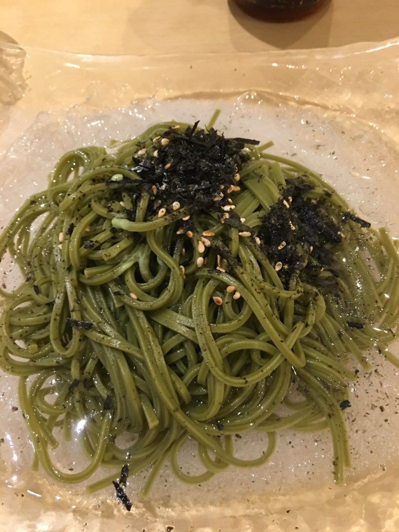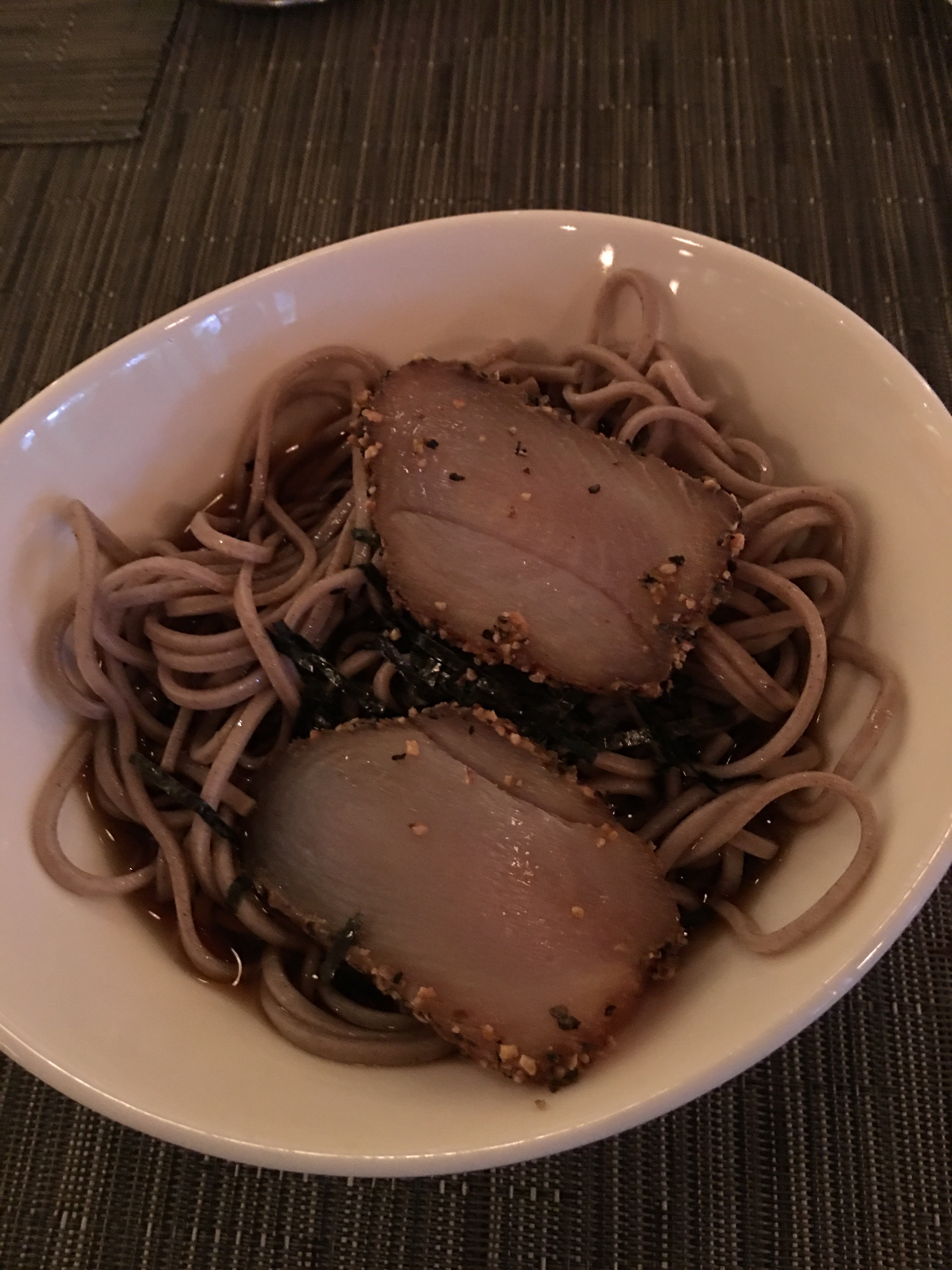 Our rate included breakfast, so we dined again at the Mandarin Oriental. (If we have to pay for anything, we want the ripple of every dollar to somehow make its way back to us). I enjoyed seared yellowtail over soba.