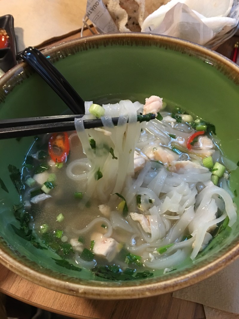 We had some vegetarian turkey chili, some pho, and a cappuccino or two. Then it was time to board.
