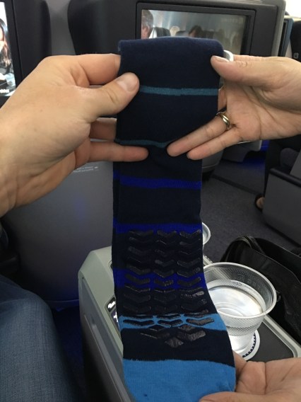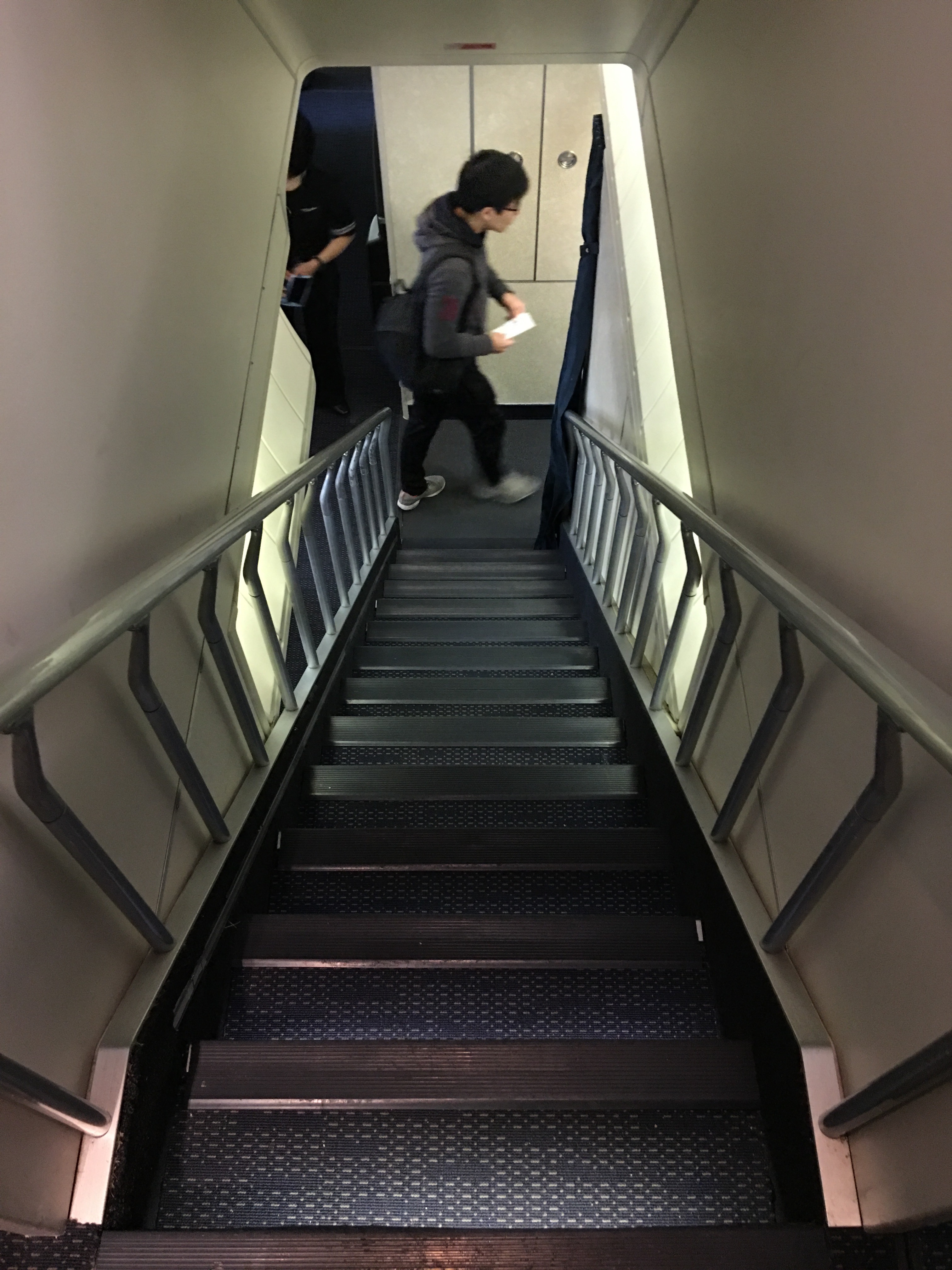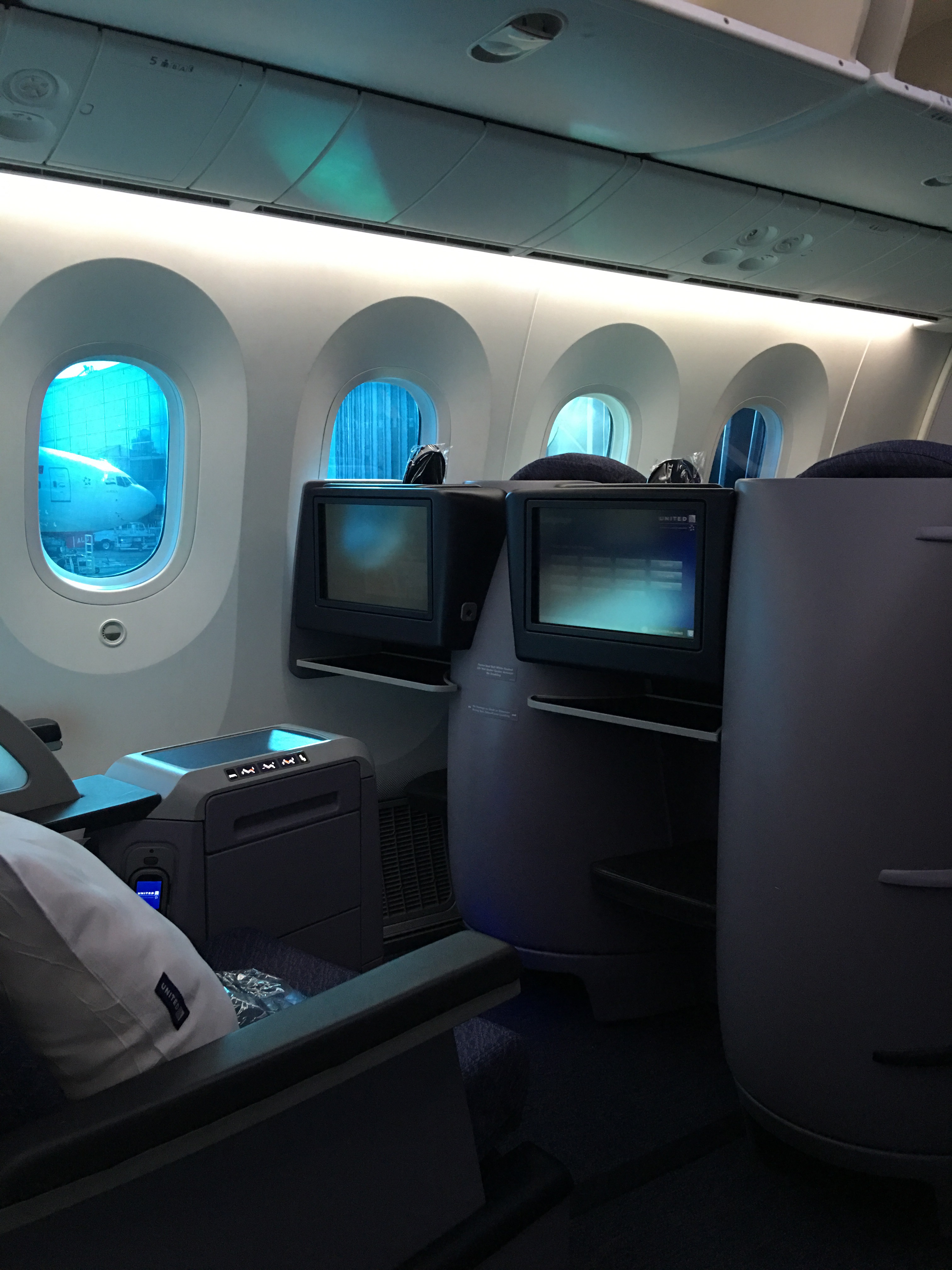 The novelty of flying upstairs is still fun, but on the UA product, the overhead bin space is minimal, so if you don’t have a window seat (each has two sizable storage compartments that go from the armrest to the floor), then some carry-ons may be problematic.