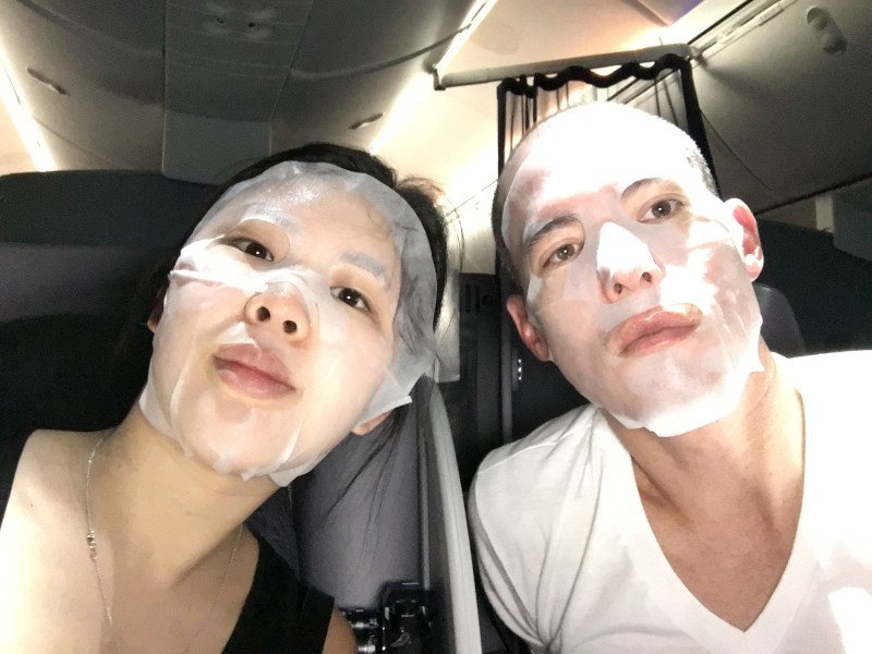 UA has hundreds of movies available. I watched four movies while Michelle slept. Then we performed our now obligatory hydration-mask ritual: