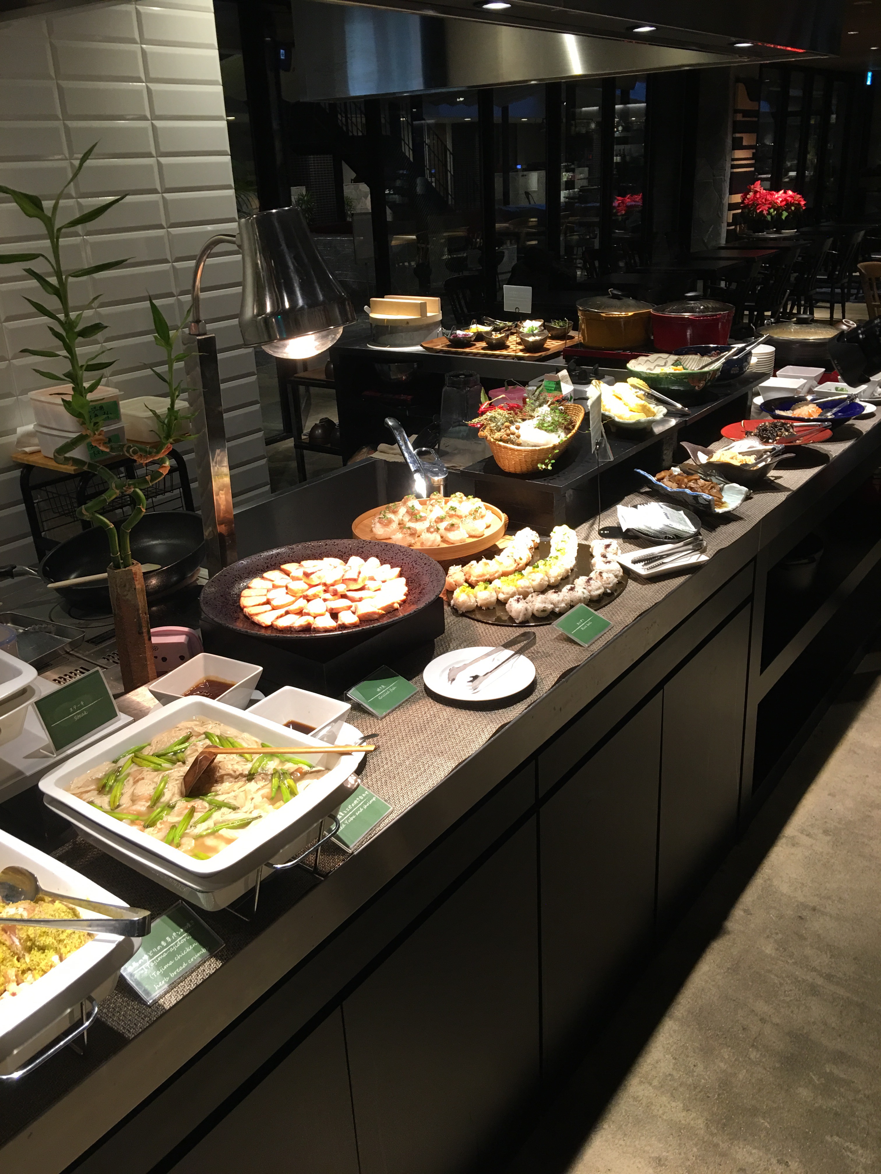 Even though we’d just spent the past 15 hours eating, we were jonesing to have our first meal in Kyoto. But it was late, and it was raining outside, so we opted for the restaurant at the hotel. This proved to be a good decision.