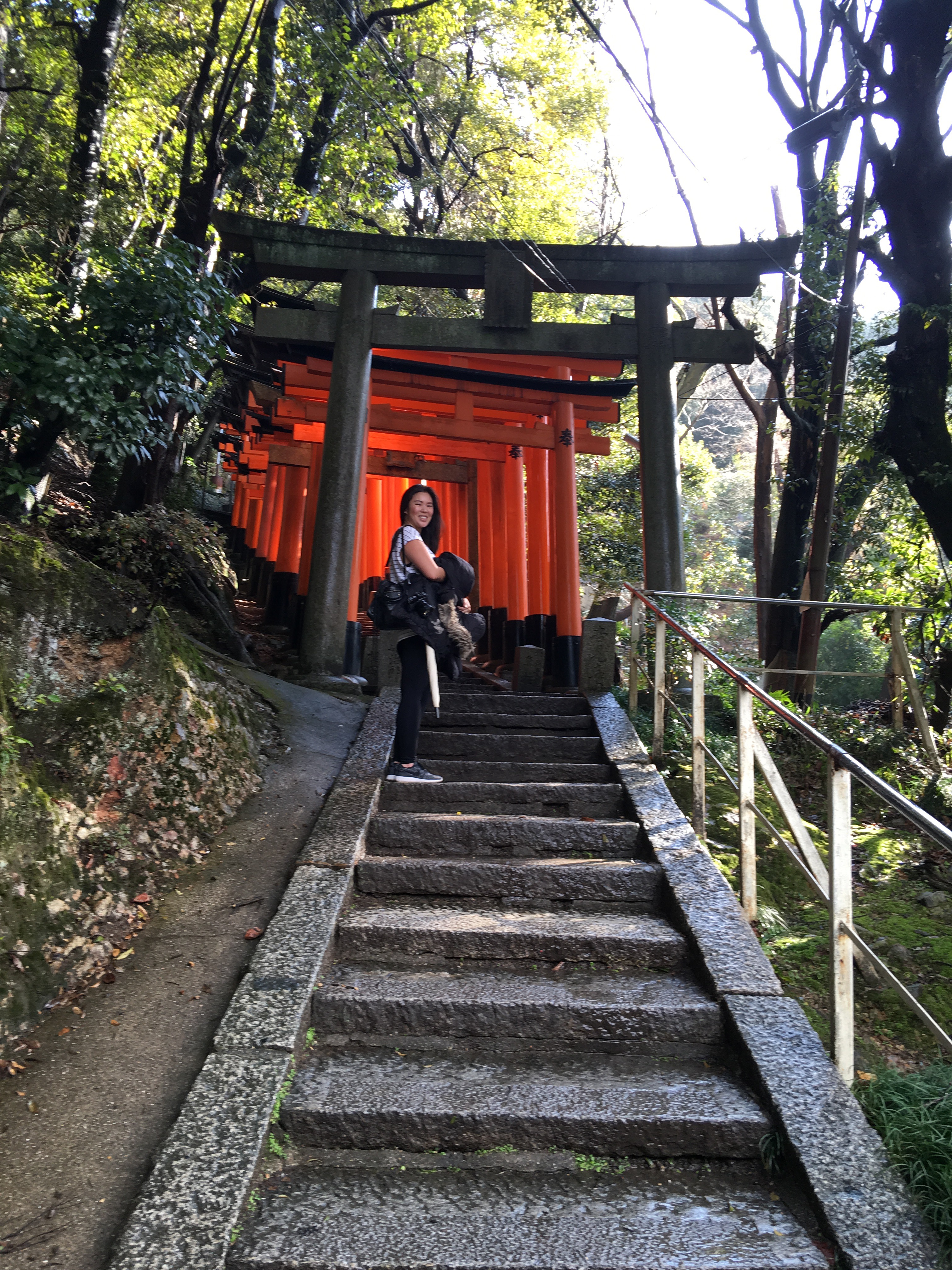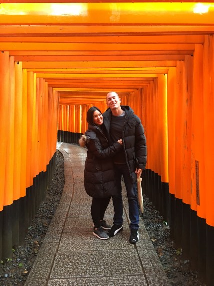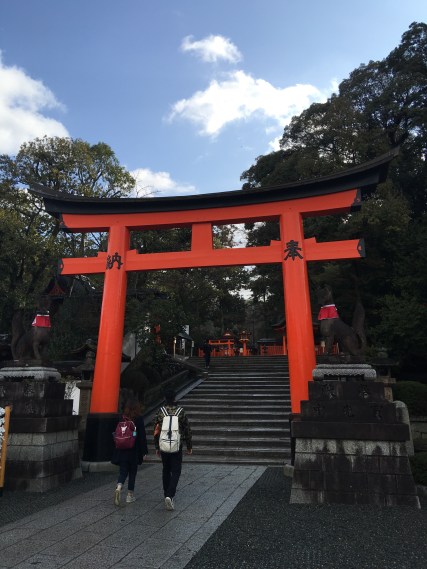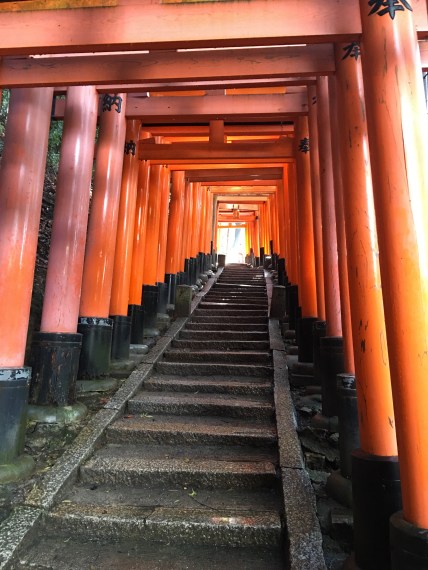 Our first stop was the Fushimi Inari Taisha shrine. It sits at the base of a mountain and is over 1,000 years old. We found this shrine (and the other shrines along the staired 4-kilometer walk) vibrant and stunning.