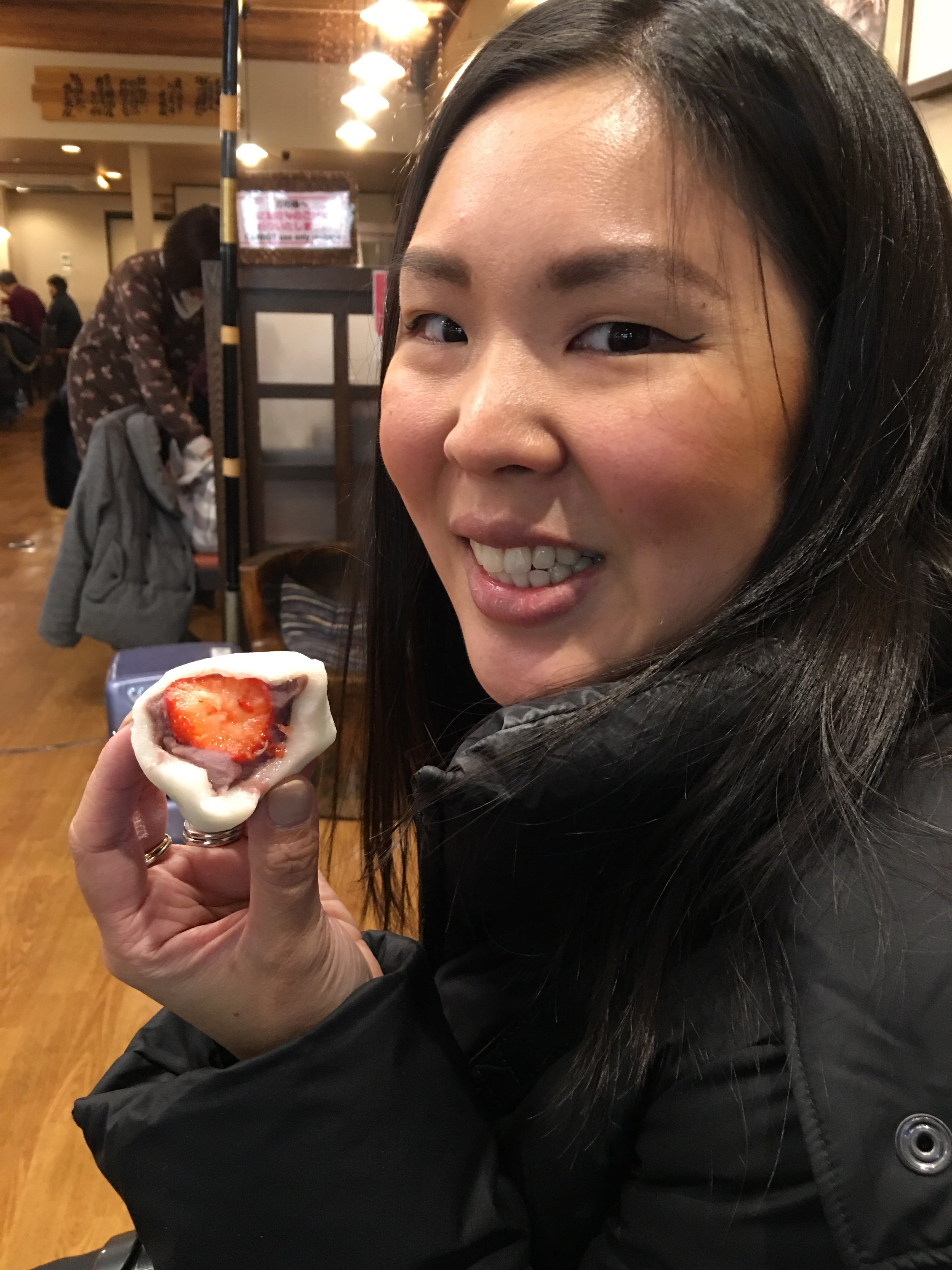 Michelle had a mochi with a strawberry inside.