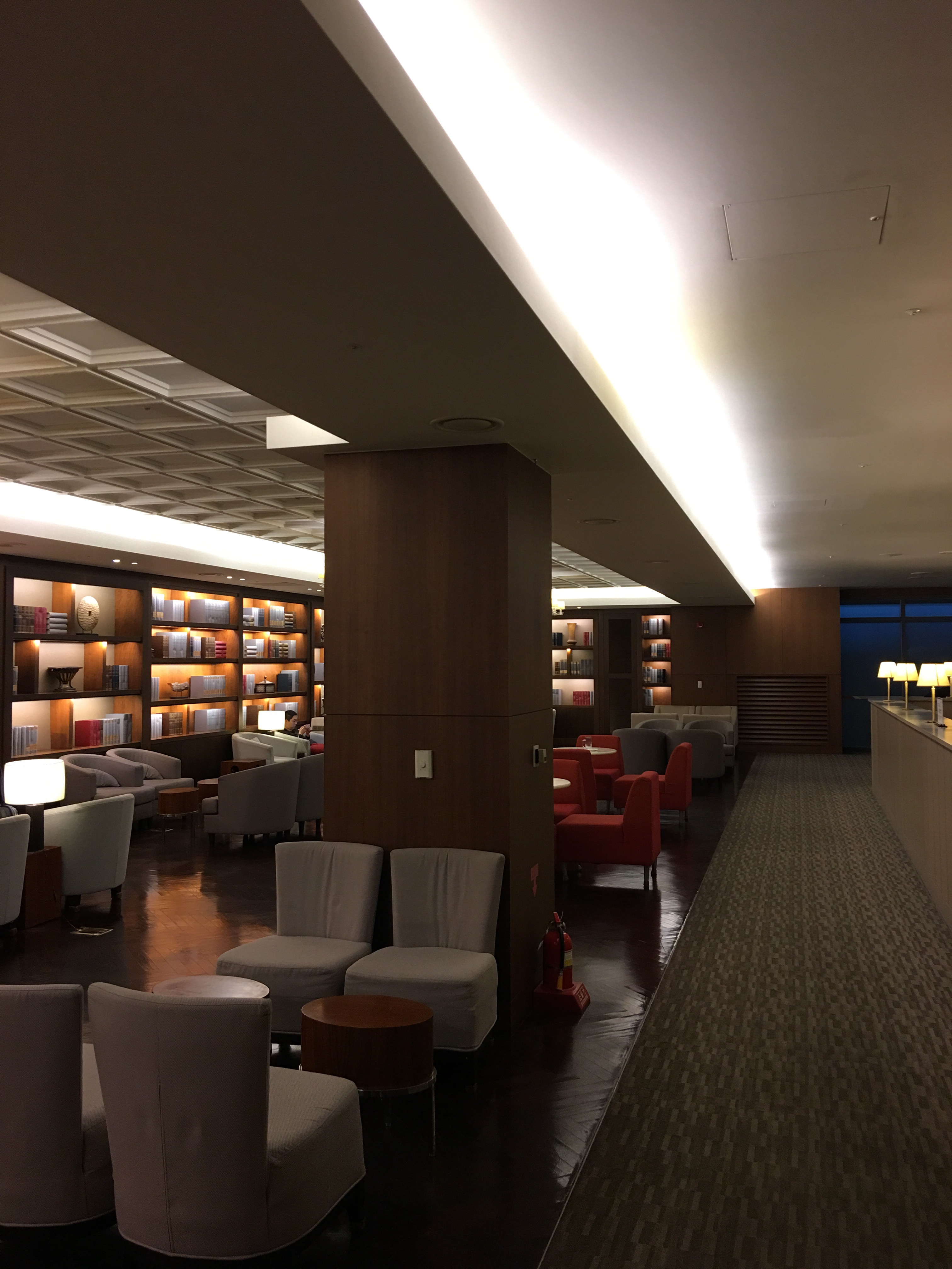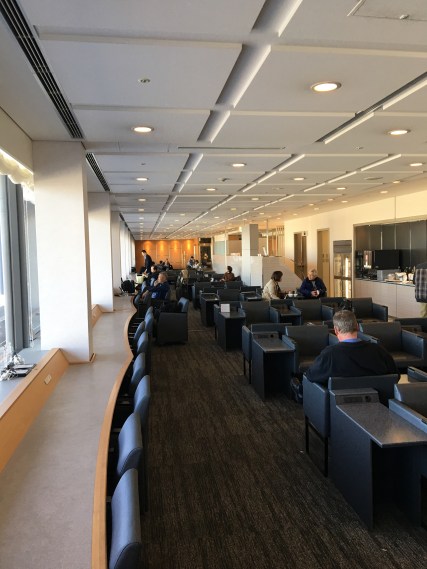 After enjoying the locally-sourced farm-to-table cuisine at the Centurion Lounge, we strolled over to the United Club Lounge in the international terminal, which was unfortunately so crowded that we couldn’t find a seat. So we went back to the Centurion Lounge where it was more quiet, and there was more room.