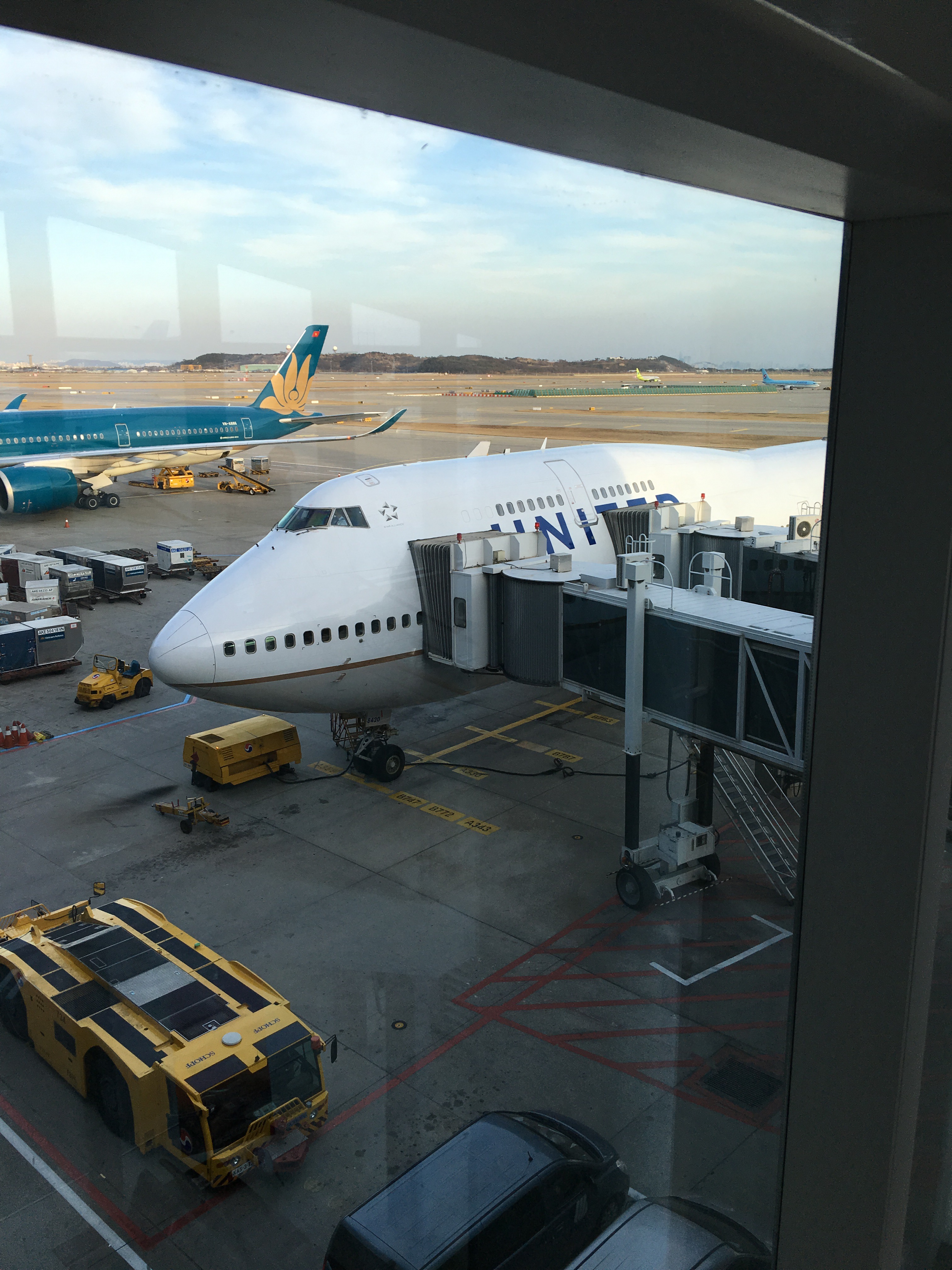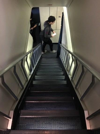 Walking through the jet bridge, we got our first glimpse of our plane: the iconic 747-400.