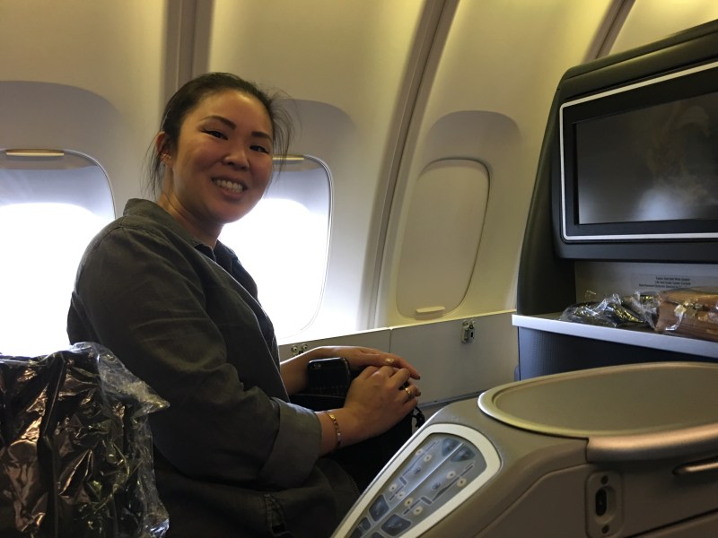 The UA 747-400 might be 20 years old, but it is a perfect blend of size and wonder. There’s something about walking upstairs in a plane — and then sitting in rear-facing lie-flat seats — that adds to the magic of commercial flight. While the 747-400 is not the new kid on the block (the 787 we flew to Kyoto was likely a year or two old), it was Michelle’s first time aboard a 747. And while I’ve done this dance before, I remember marveling at these big metal birds as a kid. UA will likely remove the remaining 747s from its fleet as soon as 2018. I’m happy Michelle had a chance to experience the Queen of the Skies, as most commercial airlines will likely relegate this double-decker jumbo jet to cargo transportation in the future.