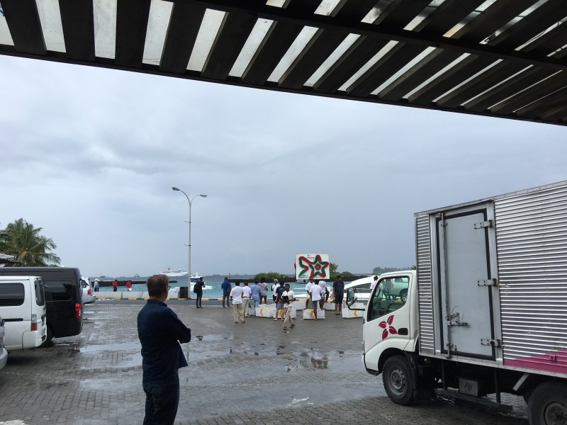 You land at Malé International Airport, and walk to your awaiting boat or seaplane. Pictured here is the baggage claim exit.