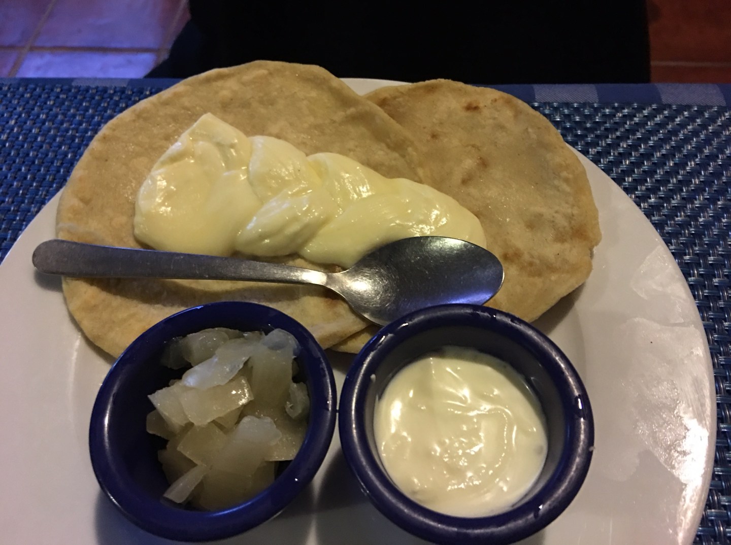 Tostadas!The nacatamal is larger than a Mexican tamale and steamed in banana leaves.Breakfast at a coffee shop in the Metrocentral Mall in Managua.Beans and cheese (with fried plantain chips).Chicken, rice, and beans in Granada.Look closely. You should see a corn tortilla in her left hand, sheathed by a plastic bag. She is making a quesillo, which includes Nicaraguan cheese (white, soft, and chewy), sour cream, salt, and finely-chopped onions pickled in vinegar.Dessert at Cocina Haydée in Managua.Pupusas (stuffed corn tortillas) in Catarina.Tacos!We returned to Cocina Haydée in Managua for another dinner (and more dessert).