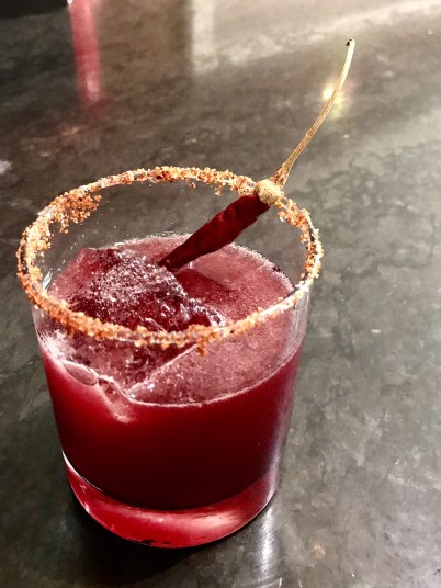 La Colorada is a drink unique to the Le Méridien hotel. Go there between 5:00-8:00 pm to have this mezcal-infused cocktail mixed with hibiscus syrup, Ancho Reyes (chile liqueur), tajin on the rim, and a red chile pepper lit aflame and then used as a garnish/stir-stick.